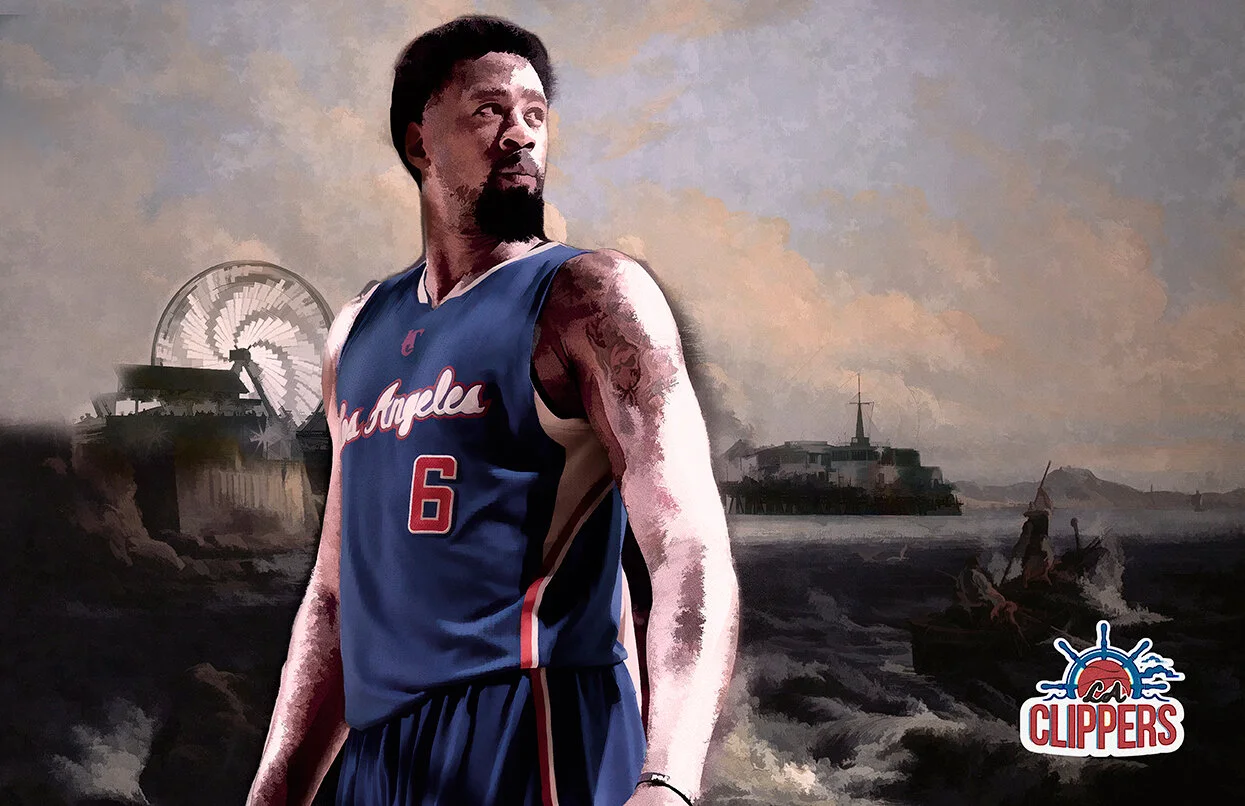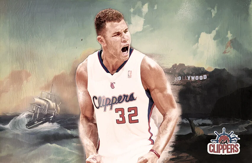 Nautical themed Clippers prints. Showing the players in an oil painting style, including iconic LA backgrounds.